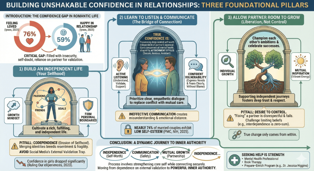 Building self-confidence in a relationship is a dynamic process that involves strengthening your core sense of self while simultaneously learning to connect with your partner in a healthier, more secure way.